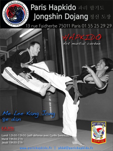 - Me Lee Kang Jong prendra en charge les cours de Hapkido du mardi et du jeudi de 19h30 à 21h